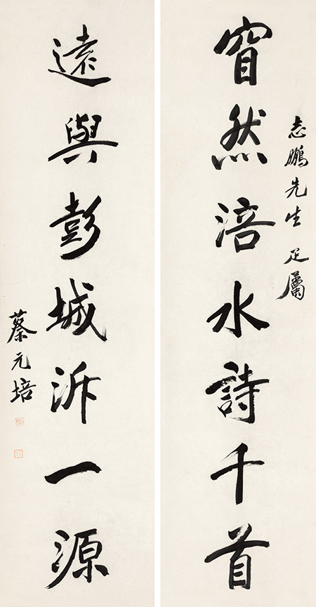 CAI YUANPEI CALLIGRAPHY COUPLET IN RUNNING SCRIPT