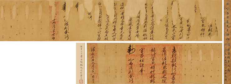 《吕祖谦告身》为宋代文思院特制绫本,后人装裱为手卷。内文残损,可辨者尚有二百六十余字。书于淳熙五年,即公元1178年。